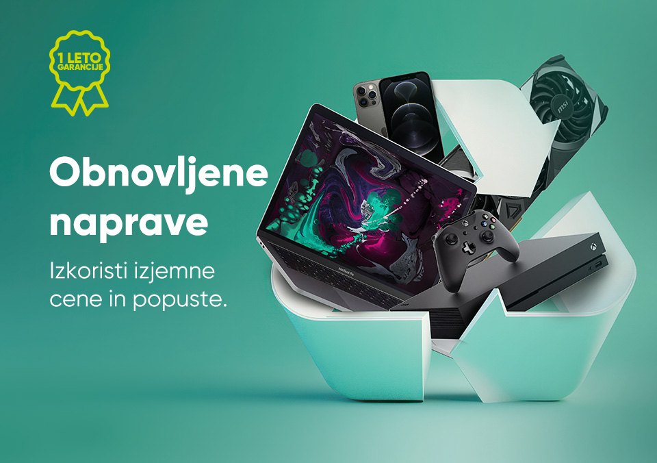 V Big Bang-u je ena izmed naših vrednot "Mar nam je za svet okoli nas". Zato smo zelo počaščeni, da lahko v naši ponudbi najdete tudi obnovljene izdelke. Z izbiro teh izdelkov vsi skupaj spodbujamo krožno gospodarstvo, skrbimo za manj elektronskega odpada in boljšamo življenje v prihodnosti.