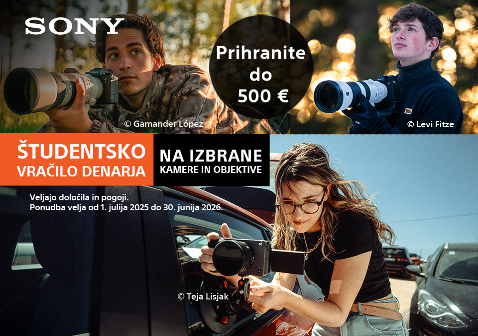 Izkoristi delno vračilo kupnine do 500 €, za izbrane fotoaparate, objektive in dodatno opremo Sony.