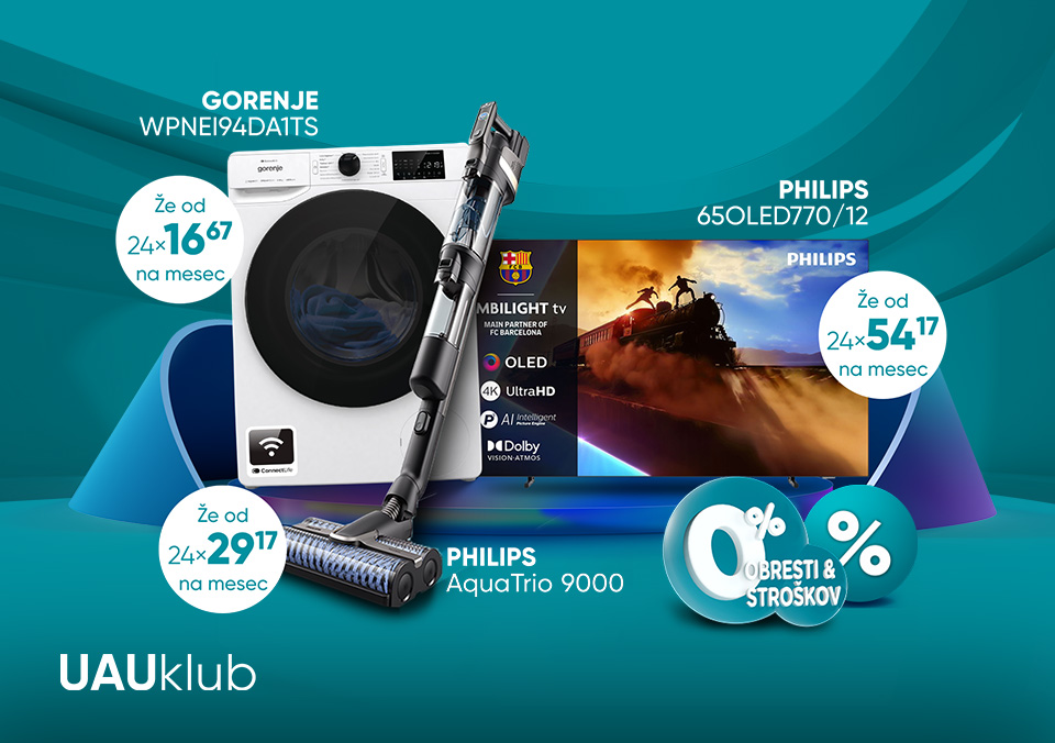 Razreži ceno bele tehnike, televizorjev, izdelkov za osebno nego, malih hišnih aparatov in mobilnih telefonov na do 24 obrokov, brez obresti in stroškov! Ponudba je na voljo za člane UAU kluba in velja za izbrane izdelke prodajalca Big Bang v obdobju od 5. do 31. 1. 2026 oziroma do razprodaje zalog.