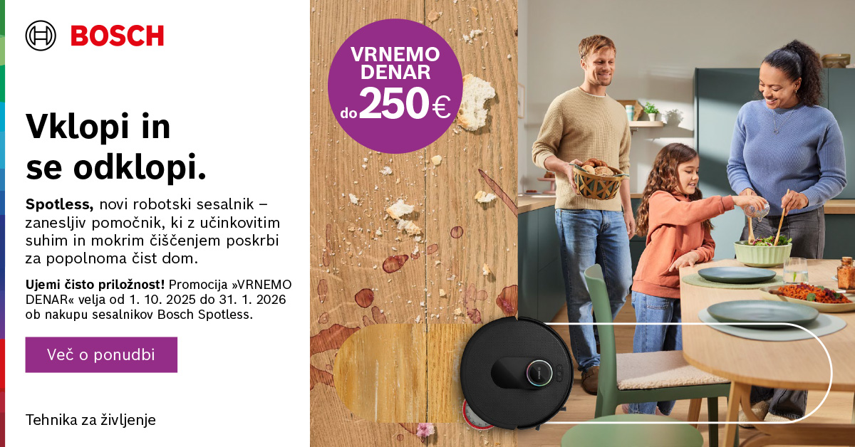 Ob nakupu robotskih sesalnikov Bosch Spotless prejmi do 250 € vračila kupnine z registracijo preko portala MyBosch.