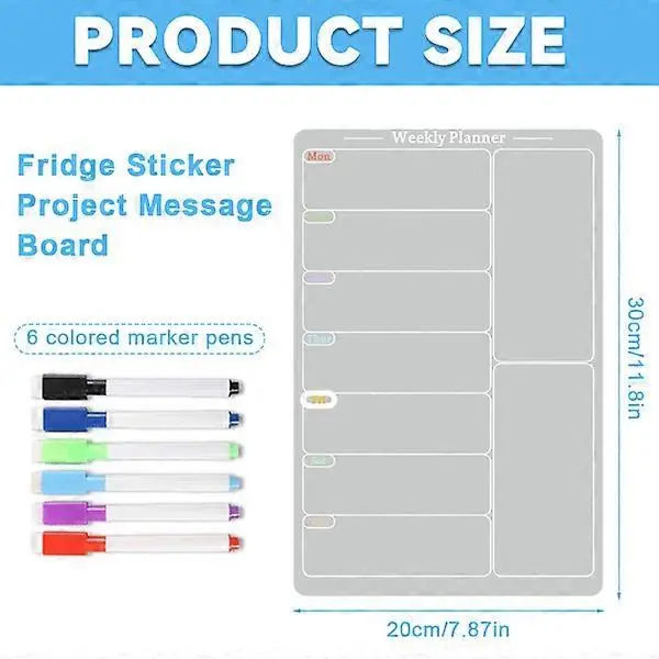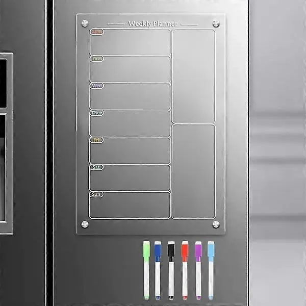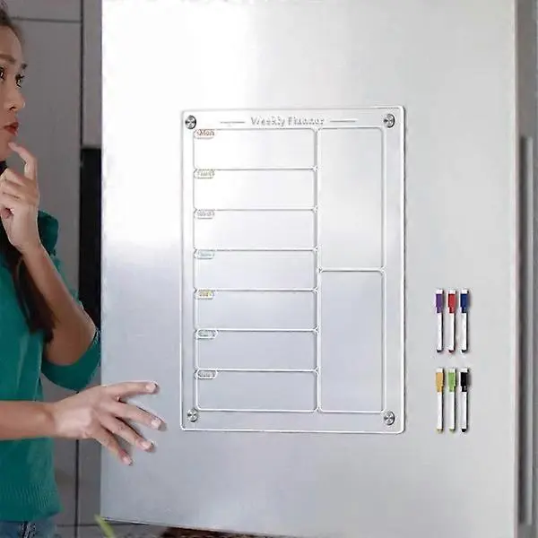 Akrilna magnetna jedilna tabla za kuhinjo, akrilni tedenski koledar za hladilnik, akrilna bela tabla za hladilnik s 6 magnetnimi izbrisljivimi