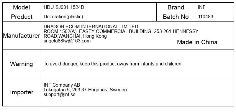 Da bi se izognili nevarnosti, hranite ta izdelek izven dosega dojenčkov in otrok.