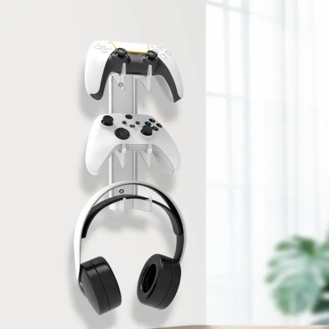 Organiziran igralni prostor: Ta akrilno stojalo za slušalke in držalo za igralne konzole je zasnovano za ohranjanje urejenosti vašega igralnega prostora. Zagotavlja namenski prostor za shranjevanje do dveh igralnih konzol, združljivih s PS5, PS4, PS3, Xbox in Switch, skupaj s slušalkami. To zagotavlja, da so vaše konzole in slušalke vedno na dosegu roke in preprečuje, da bi se izgubile ali poškodovale. Elegantna in pregledna zasnova dopolnjuje vsako igralno postavitev, dodaja pridih prefinjenosti in hkrati povečuje učinkovitost prostora. Popolno za igralce, ki cenijo funkcionalnost in estetiko.