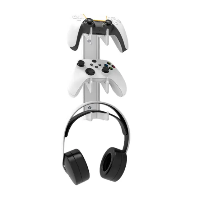 Vsestranska združljivost: To akrilno stojalo za slušalke in stojalo za prikaz igralnih ploščic je zasnovano z mislijo na široko združljivost. Primerno je za uporabo s široko paleto igralnih konzol, vključno s tistimi, ki so združljive s PS5, PS4, PS3, Xbox Series X/S, Xbox One in Nintendo Switch. Univerzalna zasnova zagotavlja, da se vaše konzole varno prilegajo in so privlačno prikazane. Poleg tega lahko stojalo sprejme večino standardnih velikosti slušalk, zaradi česar je vsestranska rešitev za shranjevanje vse vaše igralne opreme. Ne glede na to, ali ste igralec konzole ali navdušenec nad računalnikom, je to stojalo odličen dodatek k vaši igralni postavitvi.