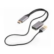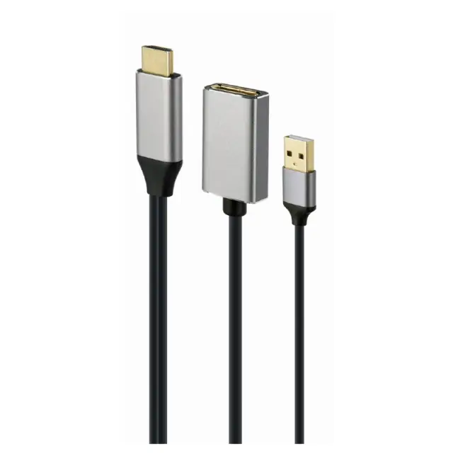 Aktivni adapterski kabel HDMI moški na DisplayPort ženski. Potrebeno je napajanje, preko vgrajenega dodatnega priključka USB. Podpira ločljivosti do 4K pri 60 Hz.