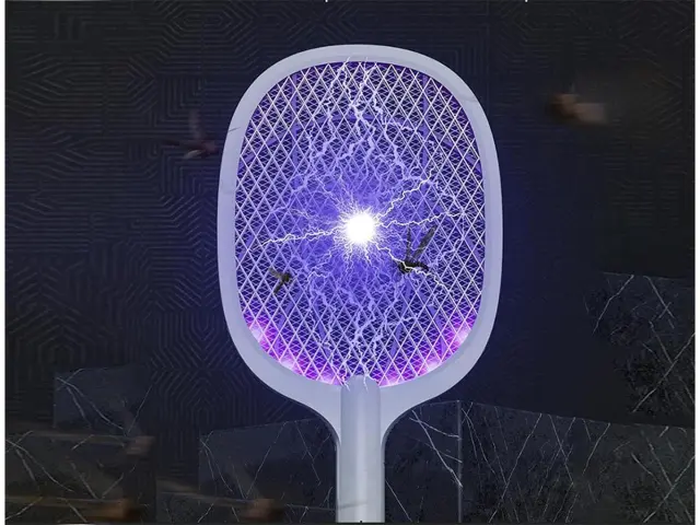 Zaščitite se pred nadležnimi insekti in uživajte v brezskrbnem okolju z našim akumulatorskim 1200mAh električnim loparjem UV LED uničevalcem insektov.