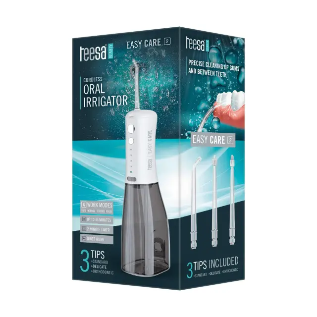 Še tako popolna zobna ščetka ne bo odstranila vseh ostankov hrane, bakterij in zobnega kamna. Če želite učinkoviteje poskrbeti za svojo ustno higieno, preizkusite zobni izpiralnik Teesa Easy Care 2. Z vsakodnevno uporabo zmanjšate tveganje za nastanek kariesa in drugih bolezni zob in dlesni. Vsak dan poskrbite za zdrav in lep nasmeh tako, da omejite obiske pri zobozdravniku.
