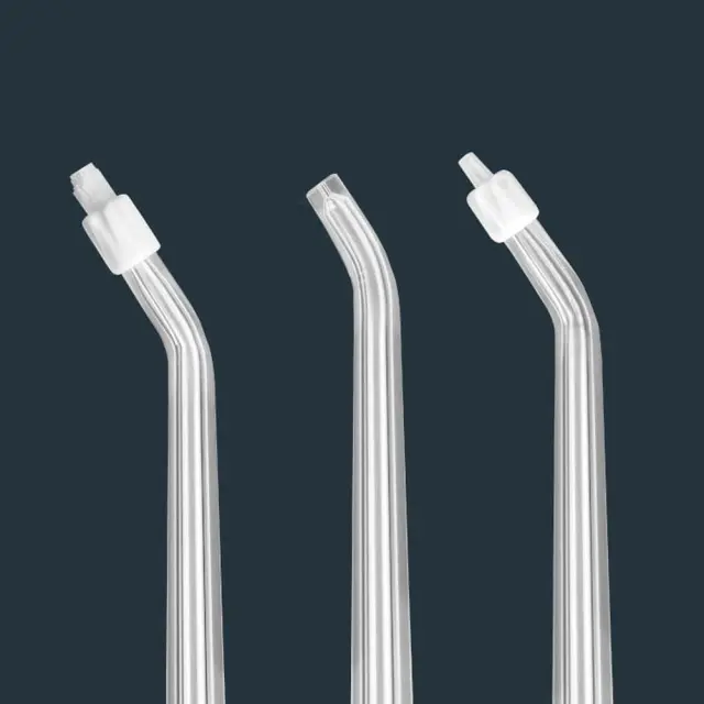 V kompletu so trije različni nastavki, ki vam omogočajo prilagajanje namakalnika vašim individualnim potrebam. Univerzalna navadna konica je primerna za vsakodnevno čiščenje. Nežna konica je namenjena osebam z občutljivimi dlesnimi, ki jim zagotavlja nežno, a učinkovito čiščenje. Ortodontska konica pa je posebej zasnovana za lažje čiščenje okrog nosilcev in žic v ortodontskih aparatih.