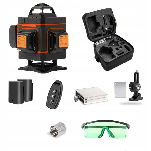 4D ravninski laserski nivo s križnim laserjem, ki ponuja 16 linij, zagotavlja maksimalno natančnost meritev v različnih ravninah. V kompletu sta praktična torbica in 2 bateriji, kar zagotavlja udobno uporabo in dolg čas delovanja.
