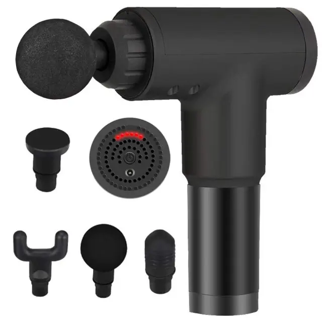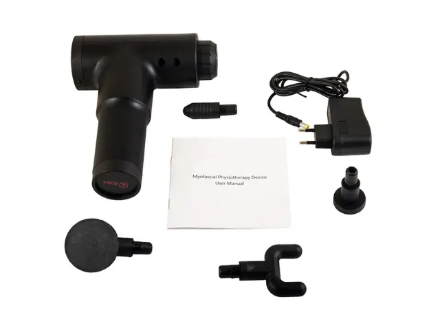 Masažni aparat je zasnovan v ergonomski obliki v obliki pištole, zaradi česar se popolnoma prilega roki . Vsebuje 4 različne konice, od katerih je vsaka namenjena različni mišični skupini.