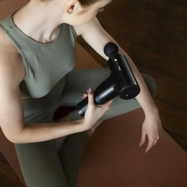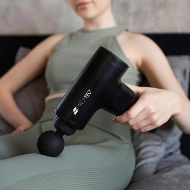 Masažna pištola se uporablja predvsem za lajšanje otrdelosti mišic in bolečin , za izboljšanje krvnega obtoka . Izboljšuje celotno stanje mehkih tkiv, pospešuje in regenerira vnetja.