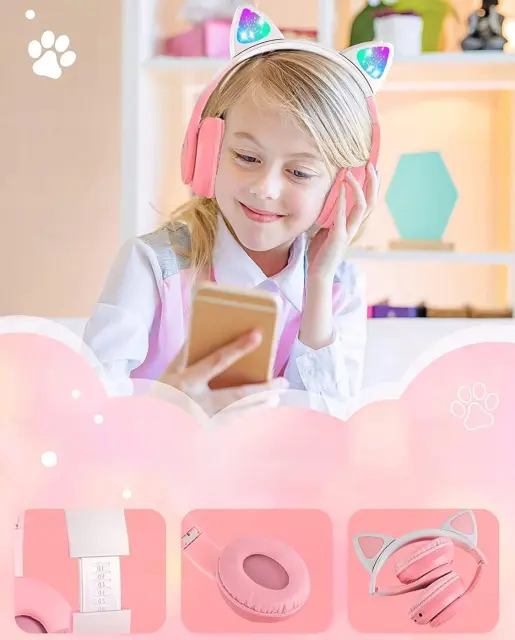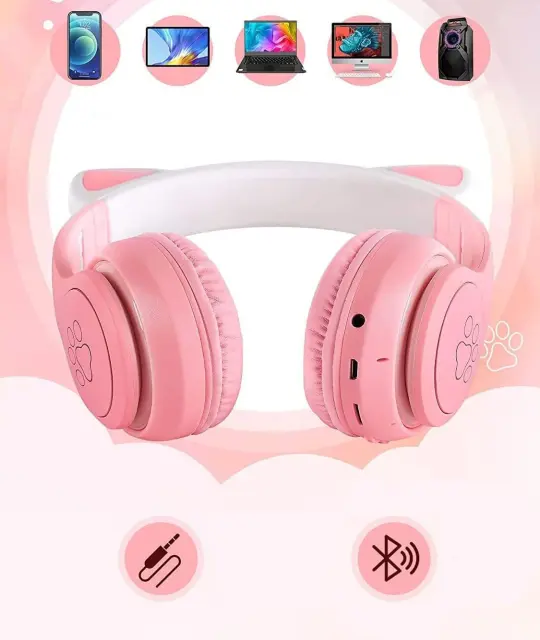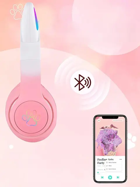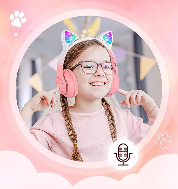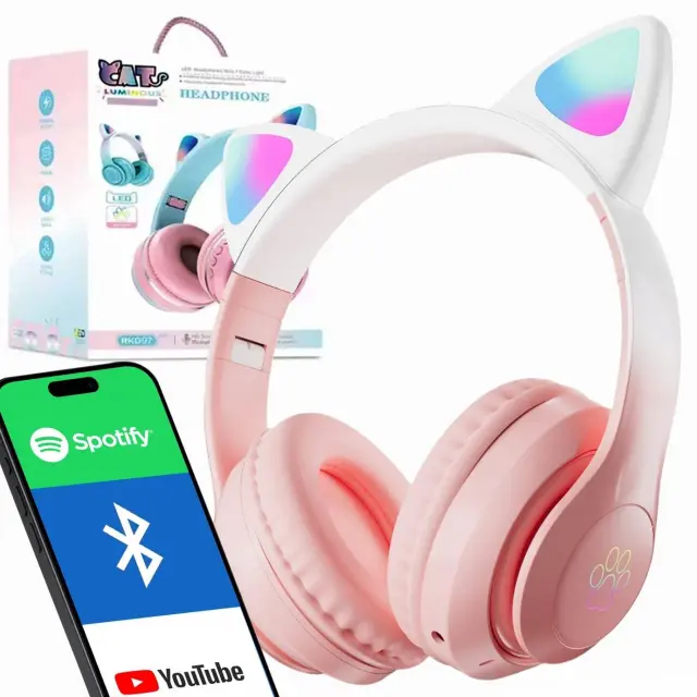 Brezžične slušalke z mačjimi ušesi so popoln pripomoček za vsakega otroka! Udobna konstrukcija, odlična kakovost zvoka, veliko število funkcij in MAČJA UŠESKA, ki se svetijo v različnih barvah, naredijo naše Bluetooth slušalke popoln predlog za vsakega mladega ljubitelja glasbe.