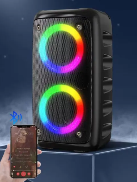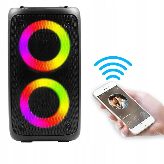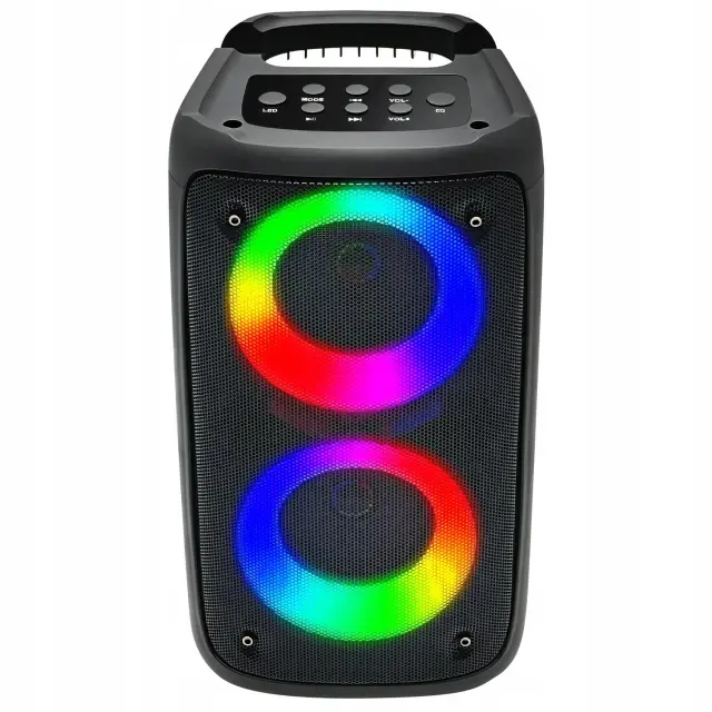 Poleg tega je zvočnik opremljen s funkcijo Power Bass, ki zagotavlja globok in poln zvok, ki bo navdušil vse ljubitelje glasbe. S priloženim daljinskim upravljalnikom lahko enostavno prilagajate osvetlitev in nastavitve zvoka, medtem ko je vgrajena baterija omogoča popolno prenosljivost. Ta zvočnik je idealen za zabave, piknike, potovanja in vsakdanjo uporabo, saj združuje vrhunsko kakovost zvoka z vizualno privlačnostjo.