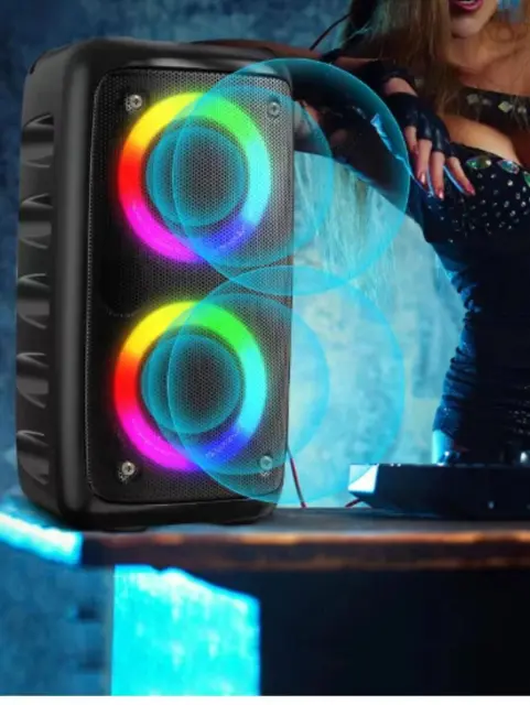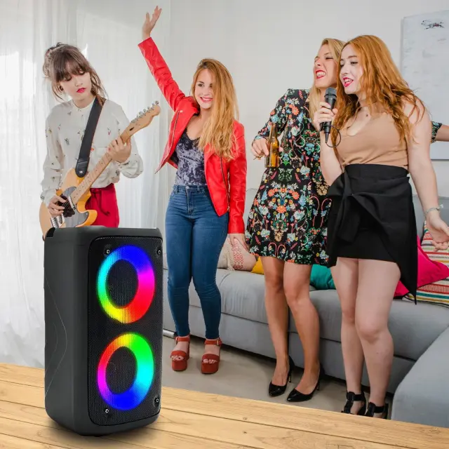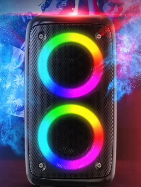 Zvočnik je opremljen s spektakularno RGB LED osvetlitvijo ozadja, s katero boste zablesteli na vsaki zabavi.