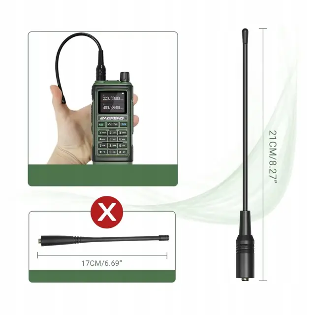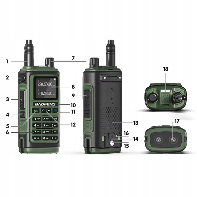 Aku. ročna prenosna radijska postaja LED LCD PMR VHF in UHF 1800mAh + slušalka