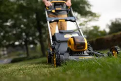 DEWALT DCMWSP550N-XJ is a brushless, rear-wheel drive lawn mower powered by 54V FLEXVOLT XR with autosensing motor for improved runtime and cut quality. It offers mulching, bagging and rear discharge, plus an ergonomic handle and a load meter for easy operation. Telescopic handles fold for One Touch Storage and vertical space-saving. Supplied without battery or charger. Cutting height positions: 25, 35, 45, 60, 85 mm; grass box capacity 55 L.