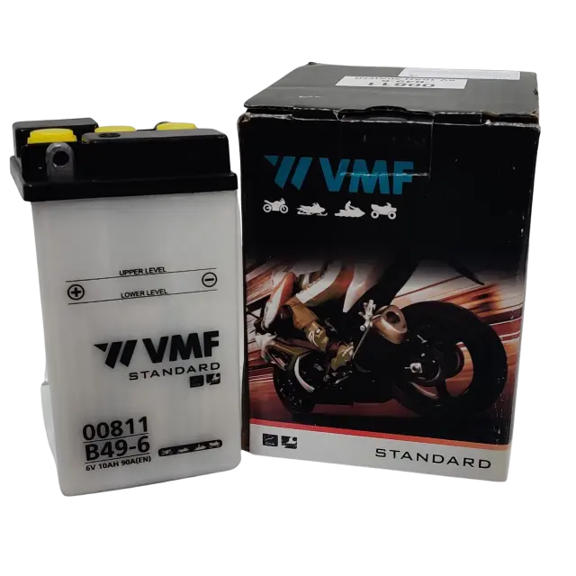 <p>Akumulatorji VMF Powersport 6V so izdelani s ploščami, odpornimi proti sulfatizaciji, zaradi česar so bistveno bolj odporni na škodljive učinke globokega praznjenja, ki so vse prevečkrat vzrok prezgodnjim odpovedim akumulatorjev. Posebni separatorji iz steklene volje in ojačani priključki zagotavljajo, da so 6V VMF Powersport akumulatorji pravilna in racionalna izbira za vse klasične motorje. Elektrolit vključen v dobavi. Akumulator je pred uporabo potrebno napolniti, in po aktiviranju preveriti doseženo napetost. V primeru, da dosežena napetost ni optimalna, je potrebno akumulator dopolniti s polnilnikom za 6V akumulatorje.</p>