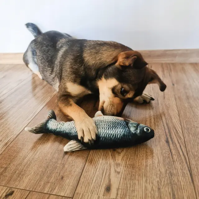 3D plišasta ribica 28 cm, ki skače, sproži naravne lovske nagone vaše mačke. Videz, oblika in mehanika delovanja posnemajo gibanje prave ribe. Riba reagira z gibanjem vsakič, ko se je mačka dotakne s šapo. Če se mucka neha dotikati ribe – se čez nekaj časa neha premikati (dokler se je ponovno ne dotakne).