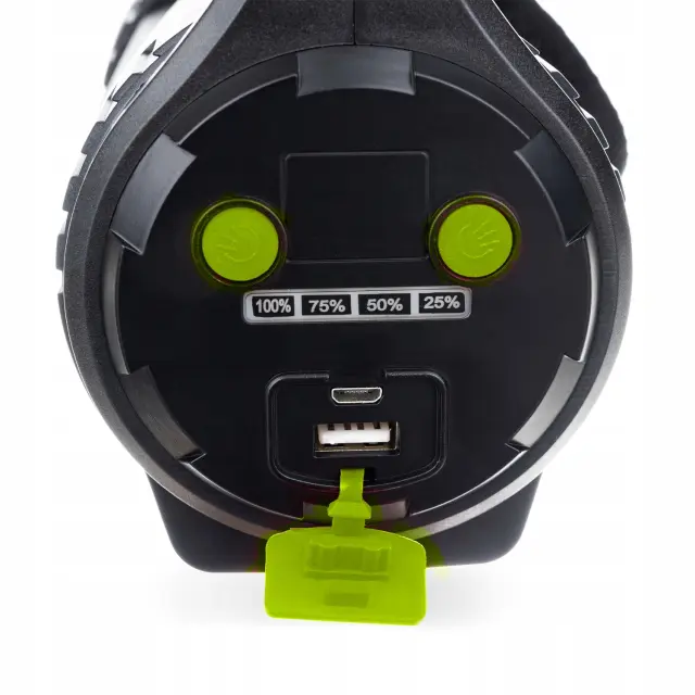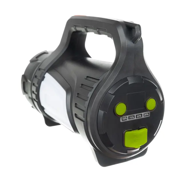 Zaradi svoje zgradbe in delovanja je nenadomestljiv . Vzdržljiva, vodoodporna in prahodporna zunanja svetilka z udobnim upravljanjem in močnim svetlobnim snopom 1200 lm bo osvetlila vsak prostor. Bela in rdeča stranska osvetlitev pomenita, da ju lahko uporabite na primer v težkih situacijah, ko potrebujete pomoč. Močna baterija zadostuje za 6-8 ur neprekinjenega dela, torej če jo potrebujete, tudi za celo noč. Vidni indikator napolnjenosti baterije na zadnji plošči vam bo omogočil hitro oceno napolnjenosti baterije. Funkcija power bank pomeni, da lahko vedno napolnite na primer telefon. Poleg tega ima svetilka priročen ročaj za prenašanje in priložen naramni pas.