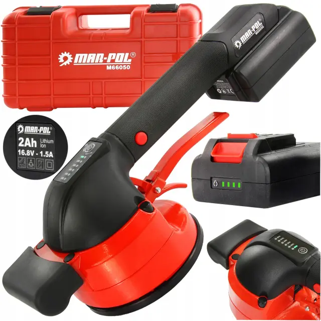 Zahvaljujoč MAR-POL vibracijskem prisesku nam bo delo zagotovo olajšano in prepričani bomo, da bodo naše ploščice položene enakomerno brez popravkov. Funkcija 6-stopenjskega nadzora hitrosti omogoča še enostavnejše prilagajanje moči naprave. Trden, varen ročaj bo zagotovil popoln nadzor nad vašim delom.