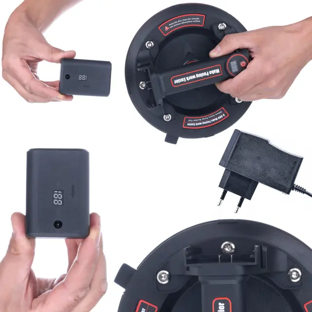 Rosfix Brezžna Vakuumska Prijemalka – Digitalni Zaslon, 200 kg Nosilnost, Ø200 mm, 3.6 V Li-Ion | ABS Ohišje