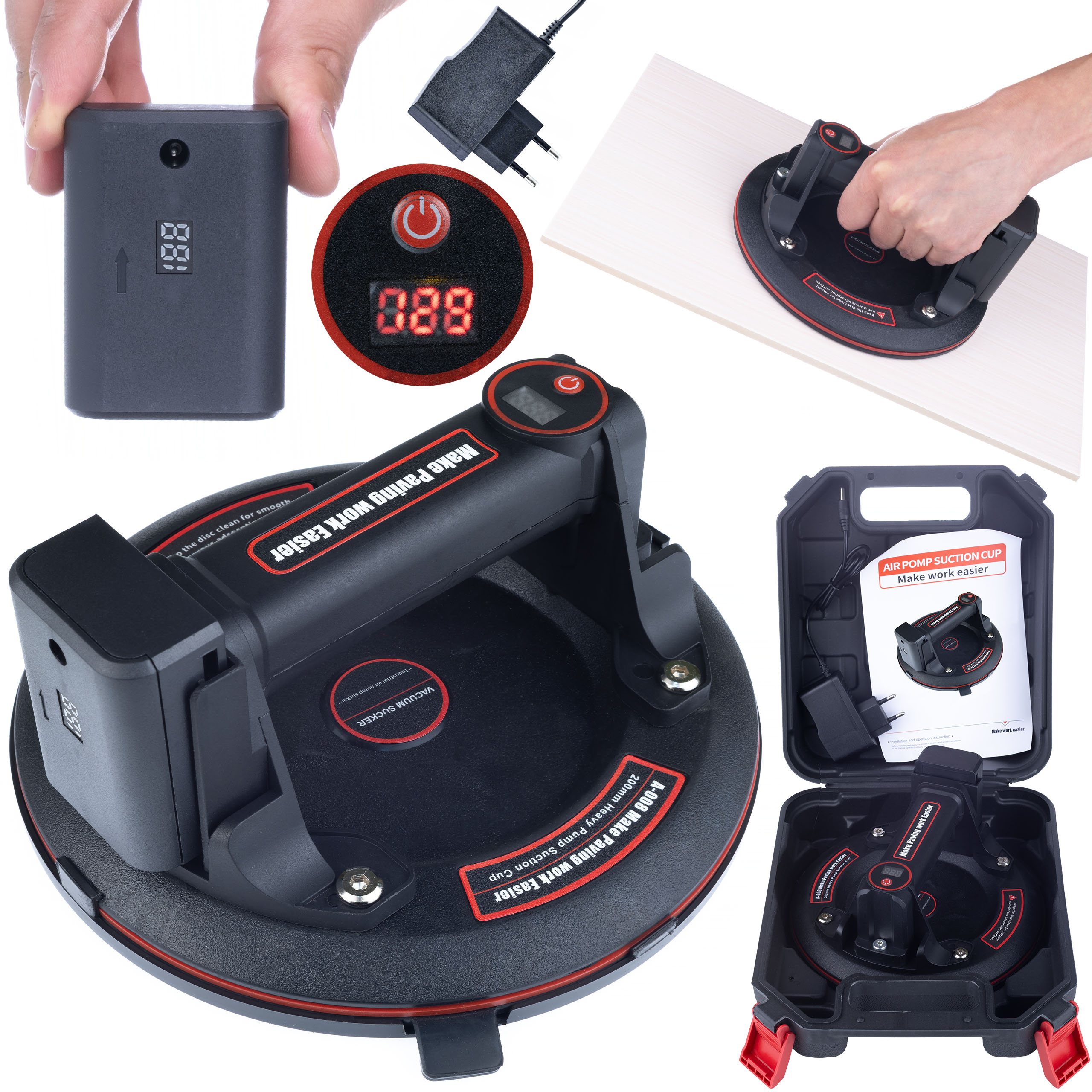 Rosfix Brezžna Vakuumska Prijemalka – Digitalni Zaslon, 200 kg Nosilnost, Ø200 mm, 3.6 V Li-Ion | ABS Ohišje