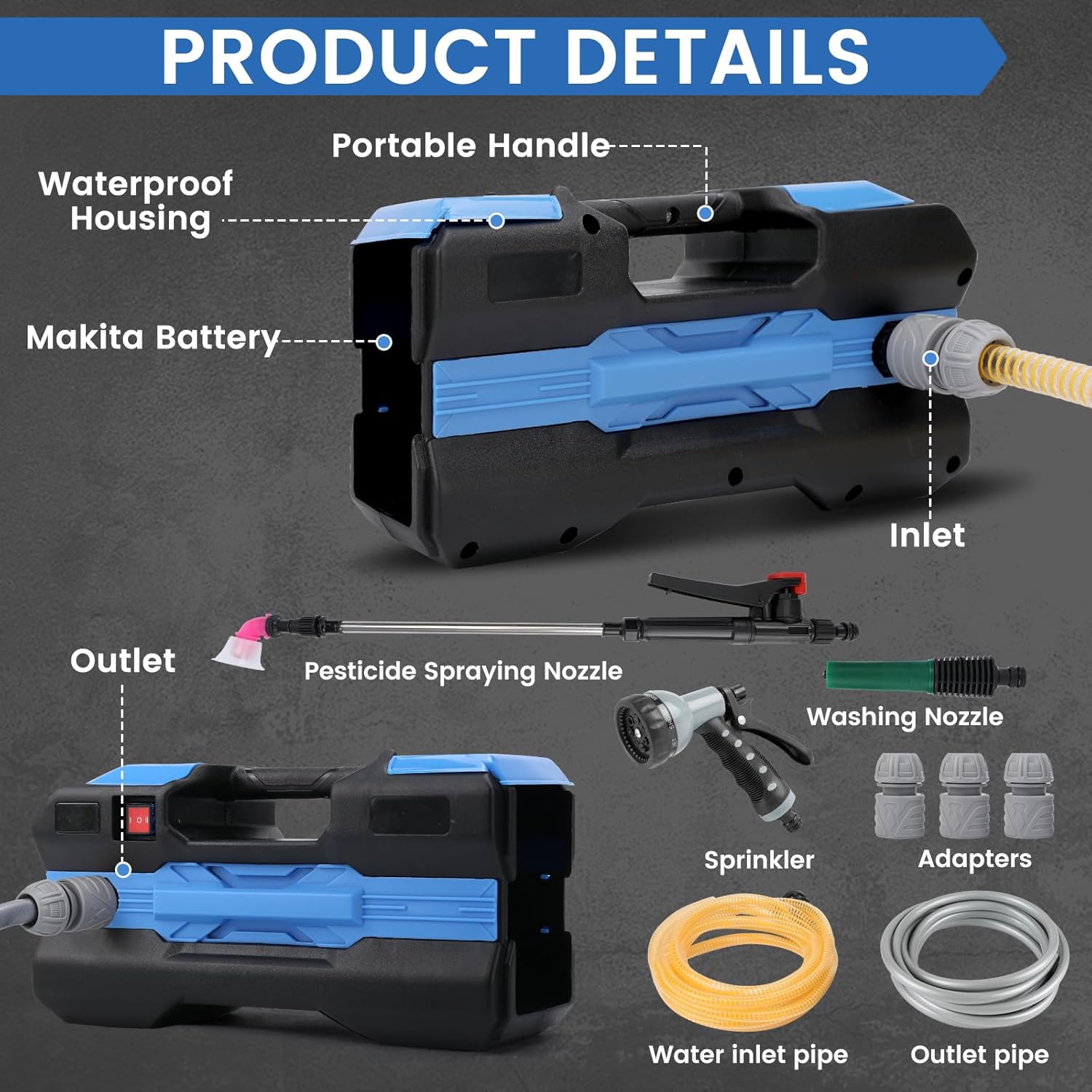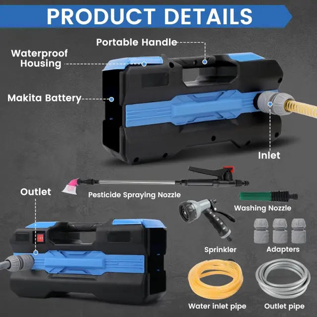 Električna vodna črpalka 18 V je zanesljiva in praktična naprava, ustvarjena za vsakodnevna vrtna in gospodinjska opravila. Zahvaljujoč brezžični zasnovi zagotavlja popolno mobilnost in udobje uporabe, združljivost z 18 V litij-ionskimi baterijami pa omogoča uporabo priljubljenih baterij, ki so že na voljo na trgu. Naprava je primerna za hitro in učinkovito odvajanje vode iz bazenov, akvarijev, masažnih kadi in rezervoarjev ali za namakanje trat in vrtov. Robustna izdelava in priloženi dodatki omogočajo takojšnjo uporabo na različnih lokacijah brez potrebe po električnem omrežju.