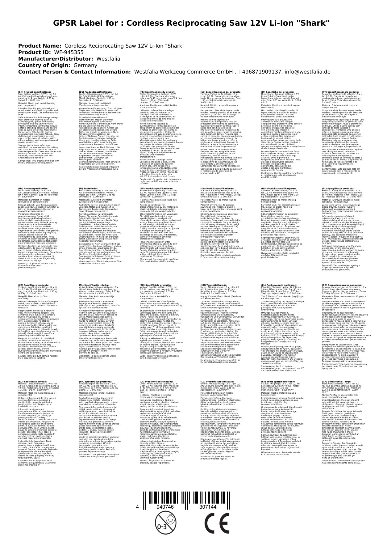 Akumulatorska žaga Shark 12V Li-Ion 2Ah, globina les 40mm, brez orodja menjava rezila