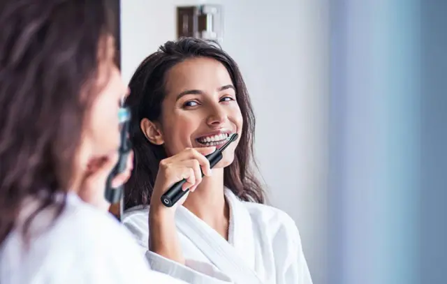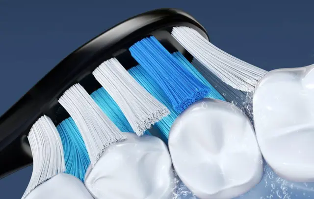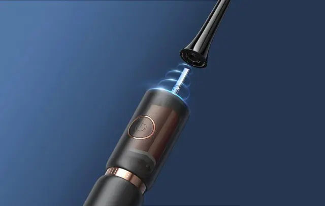 Zobna ščetka je opremljena z zmogljivim motorjem, ki lahko v načinu Clean ustvarja vibracije s frekvenco do 62.000 na minuto. To pomeni, da hitro in učinkovito odstrani ostanke in madeže. Doseže tudi prostore med zobmi. Vašo dlesni lahko očisti do 10-krat učinkoviteje kot navadna zobna ščetka in 3-krat učinkoviteje kot električna zobna ščetka. Prav tako vam ni treba spremljati časa čiščenja. Pametni časovnik vas bo vsakih 30 sekund opomnil, da spremenite območje, ki ga ščetkate. Po 2 minutah zobna ščetka samodejno preneha delovati.