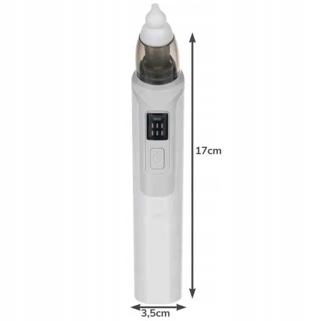 SPECIFIKACIJA – barva: bela/siva; material: plastika, silikon; kapaciteta baterije: 500 mAh; največja sesalna moč: 487 mmHg (65 kPa); mere (dolžina / širina / višina): 17 x 3,5 cm; teža: 0,149 kg; teža v paketu: 0,252 kg.