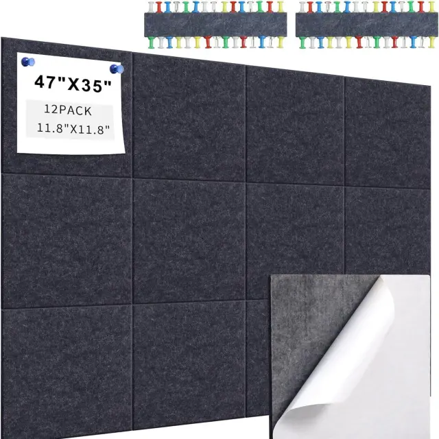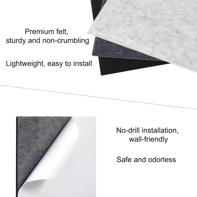 Akustične plošče iz filca - 12 zvočno izoliranih stenskih plošč z lepilom Black