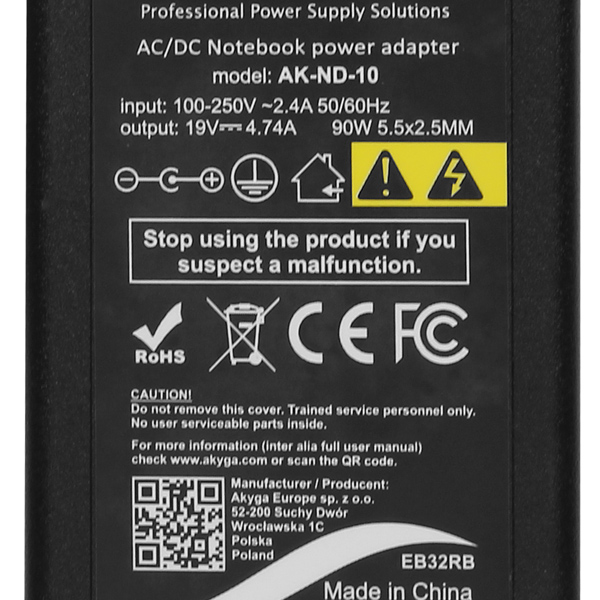 Akyga, Polnilec za prenosni računalnik 90W Priključek 5,5 x 2,5 mm, Črna