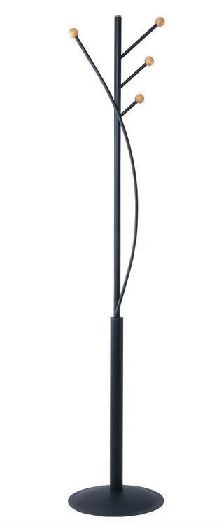 - moderen jeklen obešalnik za plašče - mat črna površina in okrogle lesene glave iz bukve - tri ravne in ena elipsasta kljuka - prihranek prostora: majhen premer tudi za majhne prostore - zaobljene lesene glave ščitijo oblačila - jekleno podnožje O 36,5 cm, ukrivljena oblika zagotavlja varno stojalo - višina 179,5 cm - posebej primerno za zasebno uporabo ali kot dodatna garderoba - premer stebra spodaj O 5 cm, zgoraj 2,5 cm - 4 kovinske kljuke s končniki O 3,3 cm iz lesa, trdno zlepljene - širina krošnje na vrhu 35 cm - barva črna RAL 9004 - hitra in enostavna montaža - možnost recikliranja - garancija: 2 leti