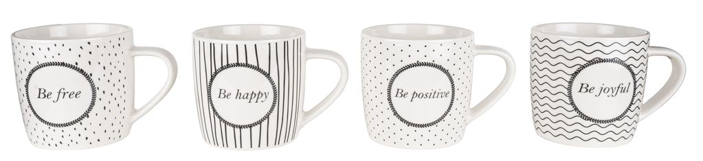 Alpekshome set lončkov iz porcelana, namenjen serviranju različnih toplih napitkov z unikatnim dekorjem. Pakirani so v »škatlo« z ročajem zato so več kot primerni tudi kot darilo. Primerni za pomivanje v pomivalnem stroju. Alpekshome se ponaša s širokim spektrom kuhinjskih izdelkov različnih stilov.različnimi dekorji in sporočili želimo v vaš dom prinesti toplino in udobje. Preveri še druge dekorje lončkov H BOX • Set 4 lončkov • Material: porcelan • Prostornina: 300 ml • Blagovna znamka: Alpekshome • Primerno za pomivanje v pomivalnem stroju • Darilna embalaža
