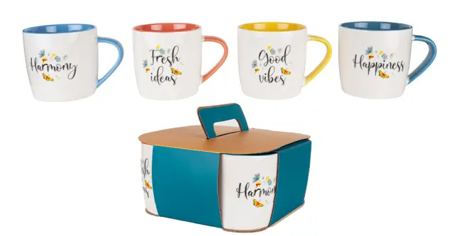 Alpekshome set lončkov iz porcelana, namenjen serviranju različnih toplih napitkov z unikatnim dekorjem. Pakirani so v »škatlo« z ročajem zato so več kot primerni tudi kot darilo. Primerni za pomivanje v pomivalnem stroju. Alpekshome se ponaša s širokim spektrom kuhinjskih izdelkov različnih stilov.različnimi dekorji in sporočili želimo v vaš dom prinesti toplino in udobje. Preveri še druge dekorje lončkov H BOX • Set 4 lončkov • Material: porcelan • Prostornina: 300 ml • Blagovna znamka: Alpekshome • Primerno za pomivanje v pomivalnem stroju • Darilna embalaža
