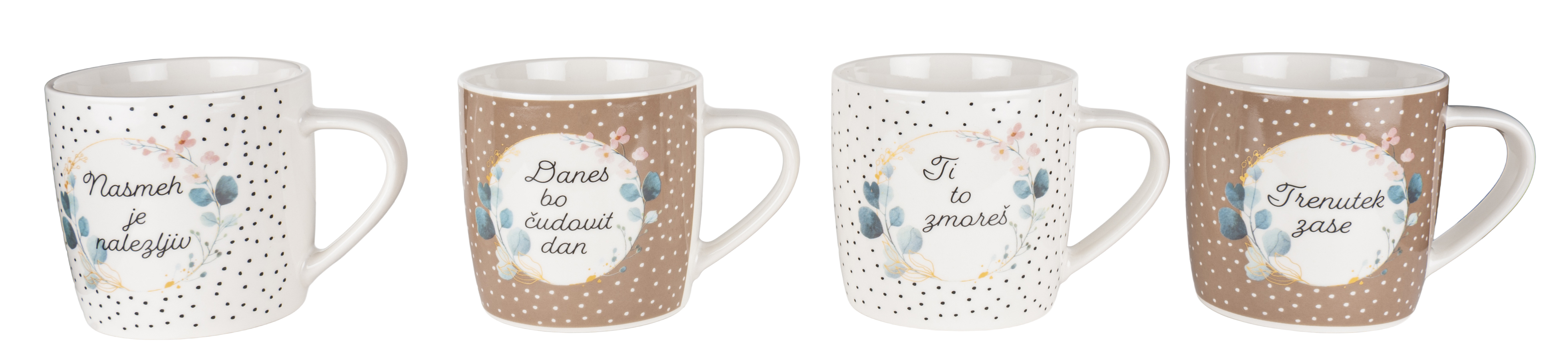 Alpekshome set lončkov iz porcelana, namenjen serviranju različnih toplih napitkov z unikatnim dekorjem. Pakirani so v »škatlo« z ročajem zato so več kot primerni tudi kot darilo. Primerni za pomivanje v pomivalnem stroju. Alpekshome se ponaša s širokim spektrom kuhinjskih izdelkov različnih stilov.različnimi dekorji in sporočili želimo v vaš dom prinesti toplino in udobje. Preveri še druge dekorje lončkov H BOX • Set 4 lončkov • Material: porcelan • Prostornina: 300 ml • Blagovna znamka: Alpekshome • Primerno za pomivanje v pomivalnem stroju • Darilna embalaža