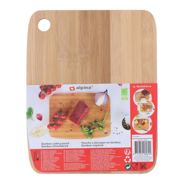 Alpina, Deska za rezanje iz bambusovega lesa 30x23cm z luknjo za obešanje, Bež