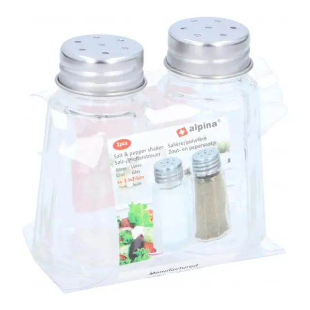 Alpina, Set slanic in poprnic iz stekla, 2 kosa s praktičnim kovinskim vijačnim pokrovom, Prozorno