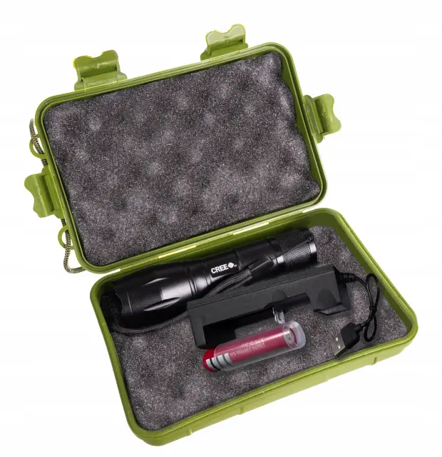 VZDRŽLJIV IN VODOODPOREN – izdelan je iz letalskega aluminija, zaradi česar je zelo trden in vzdržljiv . Svetilka je vodotesna. Stikalo je zaščiteno s trdno gumo, O-ringi pa ščitijo napravo pred vdorom tekočine.