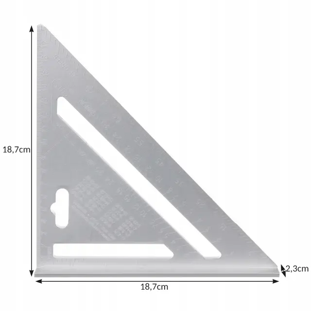 Potrebujete zanesljiv in natančen aluminijasti mizarski kotnik za vaše projekte? Naš alu mizarski kotnik z debelino 4mm in dimenzijami 185x185x260mm je prava izbira za vas! Zasnovan je za enostavno in natančno merjenje in označevanje kotov pri mizarskih projektih. Narejen je iz kakovostnega aluminija, ki zagotavlja dolgo življenjsko dobo in trpežnost. Poleg tega ima jasno označene kotne stopinje, ki vam omogočajo, da dosežete popolno natančnost. Naročite zdaj in si zagotovite zanesljiv in natančen aluminijasti mizarski kotnik za vaše projekte!
