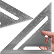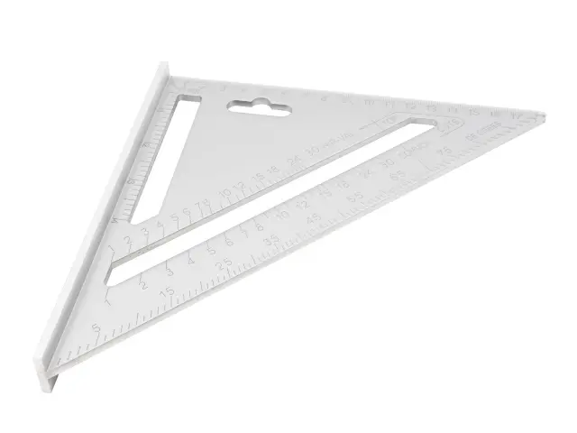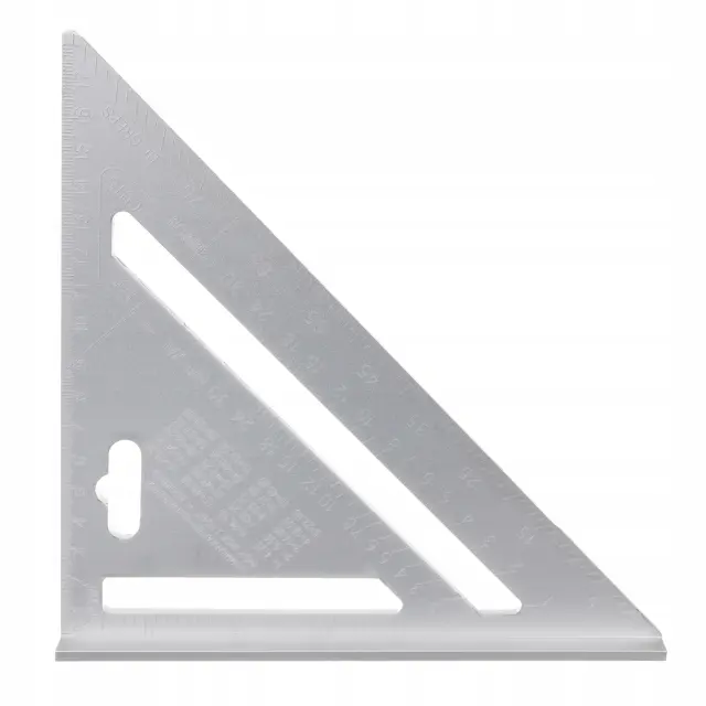 SKALA – kvadrat ima vgravirano merilo, zahvaljujoč kateremu lahko natančno izmerite in narišete dano dimenzijo. Ima dve lestvici, kot sta palčna lestvica in metrična lestvica.