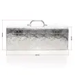 S svojimi dimenzijami 58x25x22 cm je ta kovček dovolj prostoren, da vanj spravite različne predmete, kot so orodja, elektronika, kamere, nakit in še več. Notranjost kovčka je opremljena z mehko oblazinjenim materialom, ki ščiti vaše predmete pred praskami in udarci med prevozom.