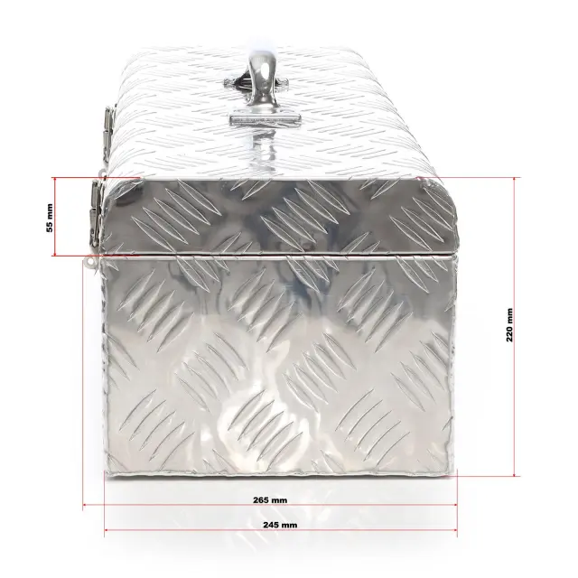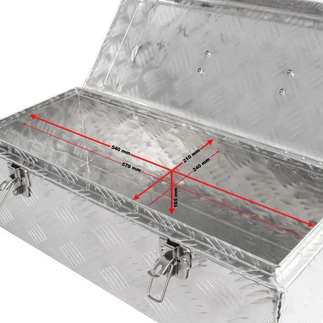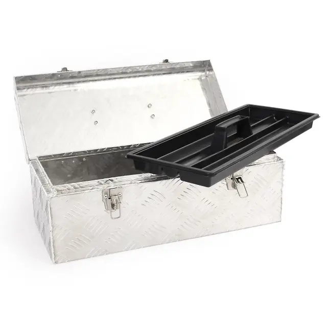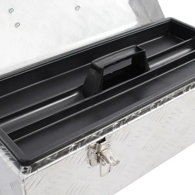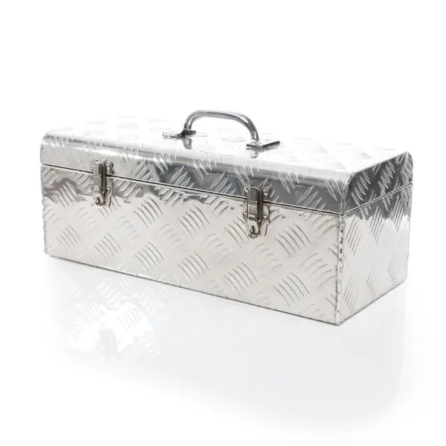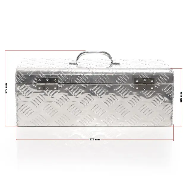 Škatla za orodje je idealno mesto za varen transport ali shranjevanje orodja. Ker je transportna škatla izdelana iz aluminijaste karo plošče z debelino materiala 1,5 mm. Tako je škatla prijetno lahka in jo lahko vzamete s seboj. Poleg tega je škatla zaradi uporabljenega materiala izjemno robustna in zdrži marsikaj. Poleg tega so posamezne komponente v celoti varjene in nameščeni tečaji iz nerjavečega jekla.
