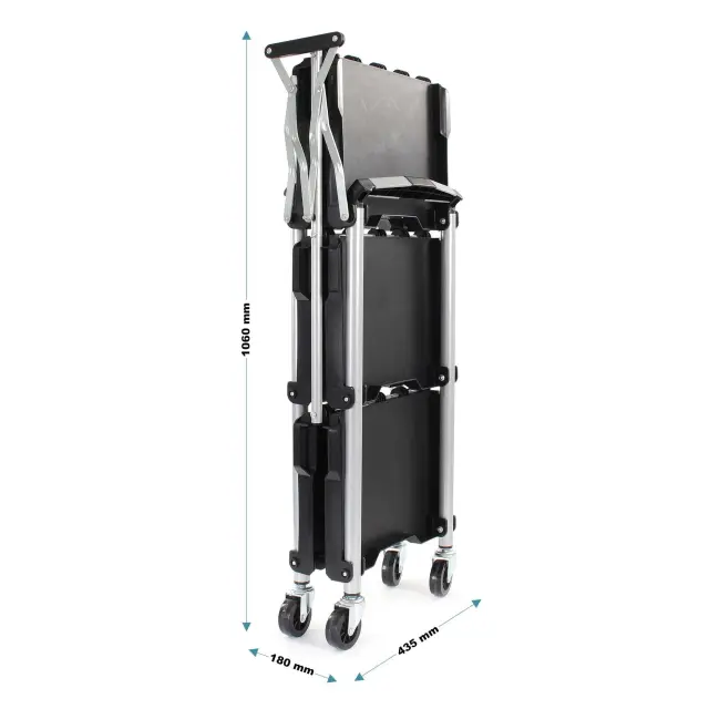 Po uporabi lahko voziček enostavno zložite in s tem prihranite prostor. Zložen ima kompaktne dimenzije 38 x 20 x 106 cm in je enostaven za shranjevanje in transport. Naj bo v kuhinji kot praktičen kuhinjski voziček, v delavnici za shranjevanje orodja ali v gostinstvu kot servirni voziček – ta zložljivi voziček je vsestranski pomočnik za najrazličnejše namene.