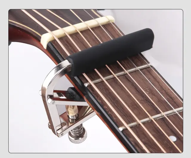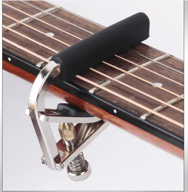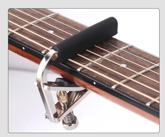 Enostavna uporaba: Ta sponka za kitaro je zasnovana za hitro in enostavno uporabo. Preprosto jo pritrdite na vrat kitare in prilagodite napetost z vrtljivim vijakom za popolno uglasitev.