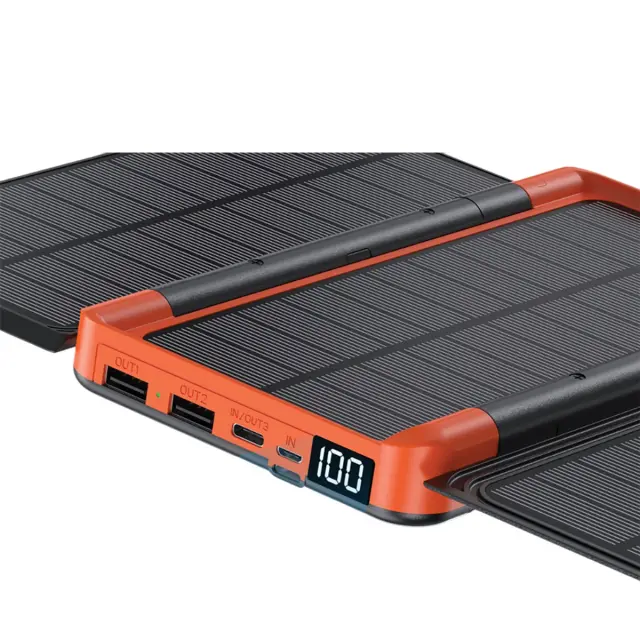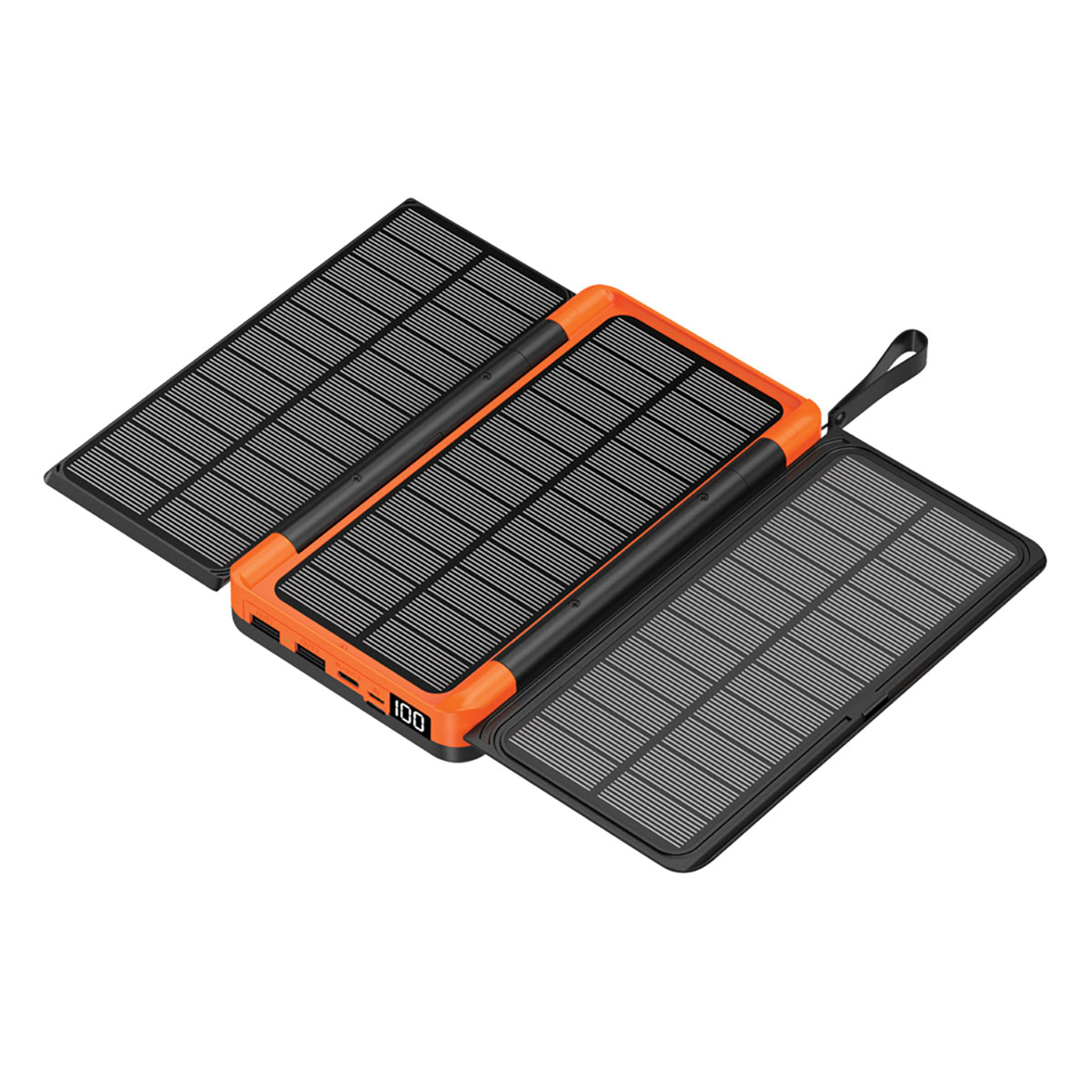 Alya Solar Powerbank 20000 mAh z Micro USB / USB-C / Lightning svetilko, Črna