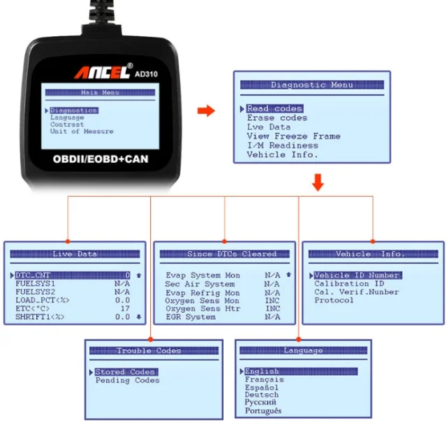 - Retrieve vehicle information (VIN, CID, CVN)
