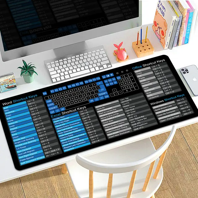 Povečana produktivnost: Ta podloga za miško ima jasno natisnjene angleške bližnjice, ki omogočajo hiter in enostaven dostop do bistvenih ukazov. To lahko znatno izboljša vaš potek dela in skrajša čas, porabljen za iskanje pravih kombinacij tipk. Idealno za študente, strokovnjake in vse, ki želijo izboljšati svojo učinkovitost pri uporabi računalnika. Vizualni pripomoček pomaga hitreje zapomniti bližnjice, kar vodi do bolj gladke in produktivne računalniške izkušnje.