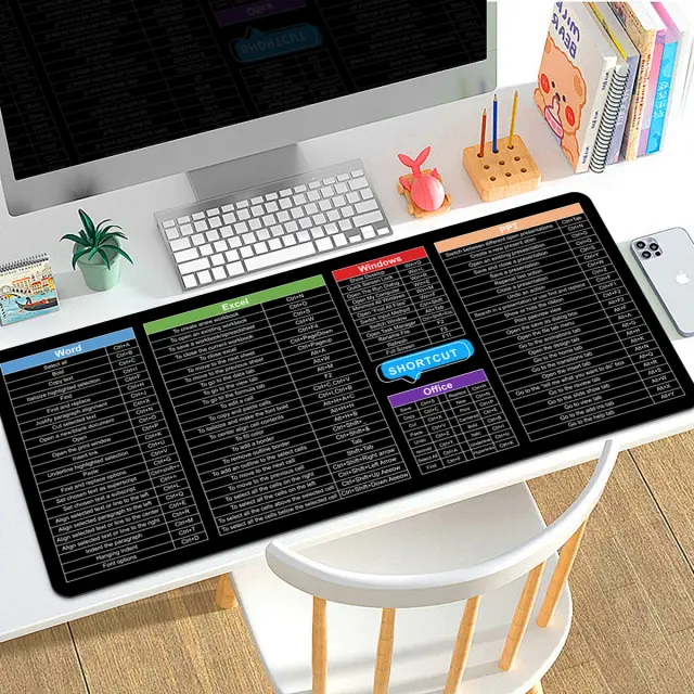 Povečana produktivnost: Ta podloga za miško ima jasno natisnjene angleške bližnjice, ki omogočajo hiter in enostaven dostop do bistvenih ukazov. To lahko znatno izboljša vaš potek dela in skrajša čas, porabljen za iskanje pravih kombinacij tipk. Idealno za študente, strokovnjake in vse, ki želijo izboljšati svojo učinkovitost pri uporabi računalnika. Vizualni pripomoček pomaga hitreje zapomniti bližnjice, kar vodi do bolj gladke in produktivne računalniške izkušnje.