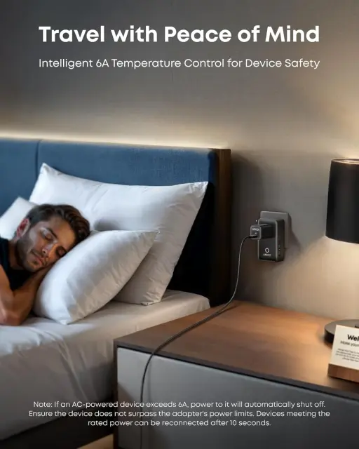 Adapter ne pretvarja napetosti, zato je namenjen uporabi z napravami, ki podpirajo ustrezno vhodno napetost. Kljub temu pa z USB-C hitrim polnjenjem do 20 W omogoča učinkovito in hitro napajanje sodobnih pametnih naprav, bodisi v hotelski sobi, na letališču ali v pisarni kjerkoli po svetu.